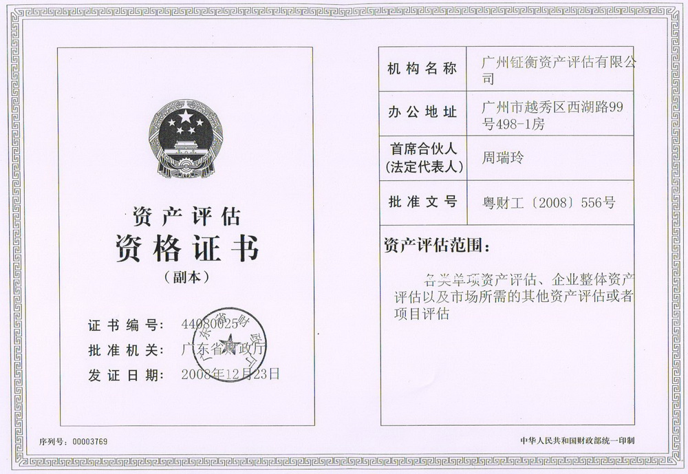 2008年11月,經(jīng)廣東省財政廳粵財工(2008)556號文件批準(zhǔn),以正大中信的評估業(yè)務(wù)部為基礎(chǔ)組建成立了廣州鉦衡資產(chǎn)評估有限公司,專業(yè)從事資產(chǎn)評估業(yè)務(wù)。